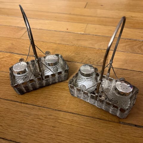 Salt og peber beholder - sølvfarvet metal - Krydderisæt