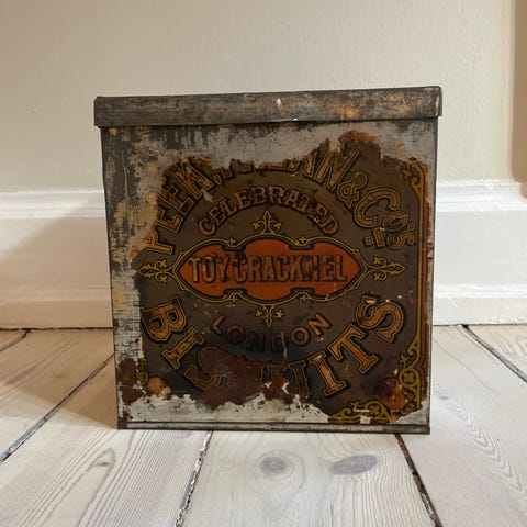 En meget særlig og sjælden kiksdåse fra Art Deco-perioden. Kiksdåsen stammer fra omkring 1920-1930 og blev fremstillet i Tyskland.