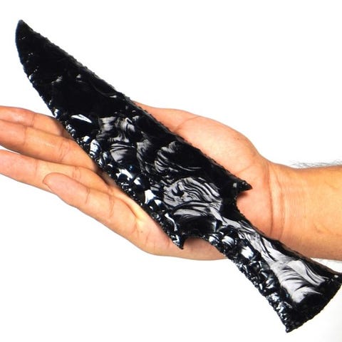 Se denne udsøgte 12" kniv, et fantastisk paleocraft-mesterstykke designet til museumshistorikere, kræsne samlere og entusiaster af enestående lithisk kunstneri.