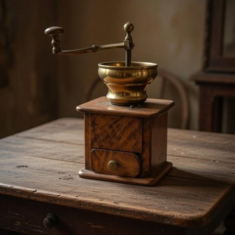 Kaffeemøllen er velfungerende og et særligt dekorativt objekt, og den er i god stand.