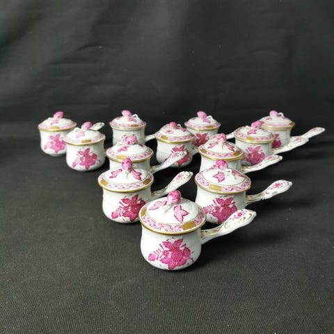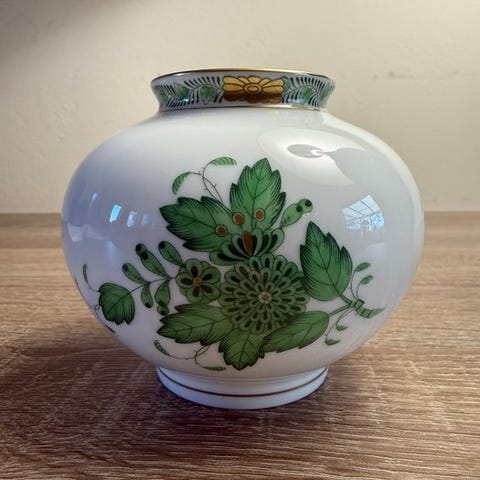 Skålen bærer jubilæumsmærket „150 Jahre Herend“ (1976) samt modelnummeret 7510/AOG og et malermærke. Fuldstændig håndmalet og rigt udsmykket med 24-karat guldstaffage.