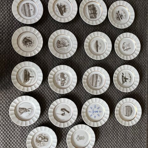 Bing & Grøndahl søværnets juleplatte porcelænsplatter med motivtryk og gulddekoration. Platterne er runde med riflede kanter og central dekoration med historiske motiver og tekst. Fremstillet i hvidt porcelæn med tryk i brunlige nuancer og guldkant. Egnede som samlerobjekter eller vægpynt.