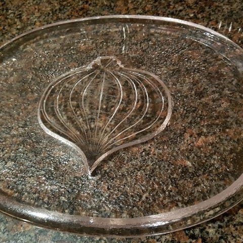 Ovalt gult glas fad fra 50'erne