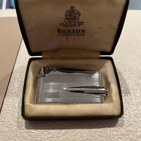 Ronson Electronic lighter fra 70 'erne forgyldt med et struktureret mønster..til gas og batteri.. der er lige kommet nyt batteri i og der medfølger et ekstra batteri