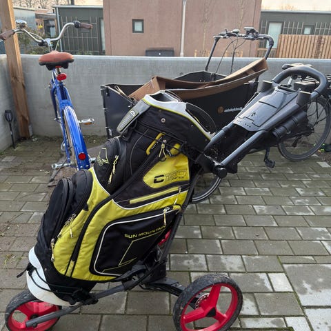 Golf bag er slidt, men fungerer fint.