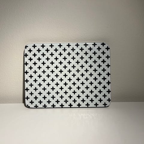 Smukkeste lavastensbræt fra Made a Mano i turkis og hvid. Måler 20x30 cm - så det er en virkelig brugbar størrelse både som fad, bordskåner, til servering eller som et smukt element i indretningen. Standen er som ny.