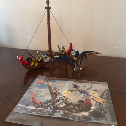 • Figurer: Alle 6 originale og unikke vikinge-minifigurer medfølger. De er tjekket og er intakte uden revner eller skader.