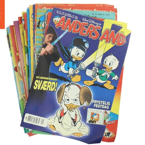 En stor samling af Anders And-blade, med forskellige udgave-numre og covers. Bladene har farverige illustrationer, og nogle udgaver kan have spor efter brug som folder eller små rifter. Perfekt for samlere eller fans af Anders And.