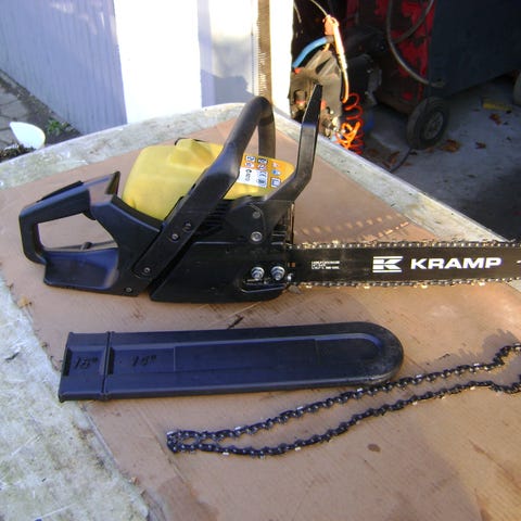 på 51,8 cc 3,3 hk , sværd 40 cm med 0,325 kæde , saven har dekompressionsventil for let start , kædespænding fra siden , og justerbar oliepumpe , med sværdbeskytter og tændrørsnøgle , saven starter let og køre super godt , som ny er ikke brugt meget , kan afprøves , nypris 5800kr