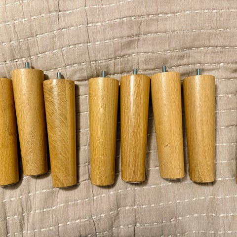 IKEA BRYNILEN møbelben i træ. 20 cm. Har 3 stk. kun brugt - som reservedel. Sættet indeholder cylindriske bruges til at montere på seng fra Ikea. Benene er udført i lyst træ og leveres i original emballage med vejledning til montering.