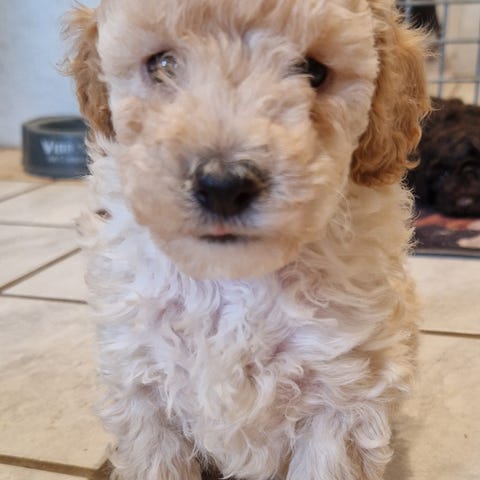 Pudlen er allergi venlig og fælder ikke. En familie hund som er god som dagen er lang.