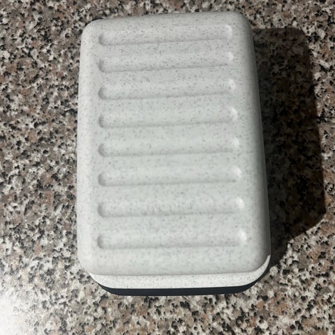 Tupperware firkantet opbevaringsbøtte med låg i plast. Består af en mørk og en lys rektangulær beholder med matchende låg. Begge dele har rillet bund og låg. Velegnet til opbevaring af brød eller madvarer. Kan stables for pladsbesparende opbevaring i skab eller køleskab.