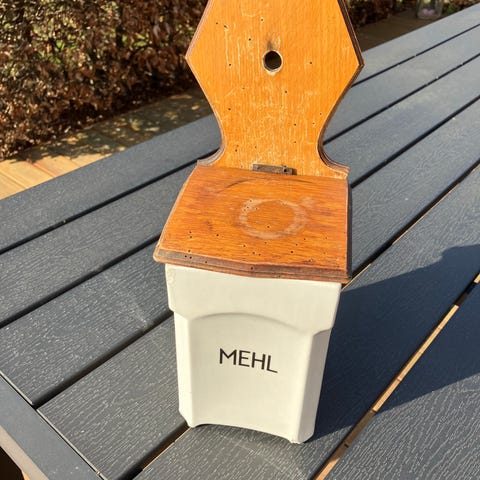 Fajance, Køkken beholdere, Moskau, 6 store beholder med låg, 5 små beholdere med låg, 4 kander, 1 væg beholder uden låg (Salz) og 1 vægbeholder uden låg (Mehl)(MEHL BEHOLDER ER SOLGT), 1 eddike beholder med låg, En del af tingene med afslag og et par stykker med revner, Stået på lofter, så de er noget snavsede, Sælges kun samlet , 225 kr