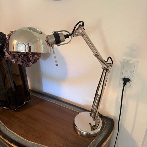 Skrivebordslampe, Ikea, Brugt men pæn og i orden med alm. stik ingen strømforsyning/Trafo