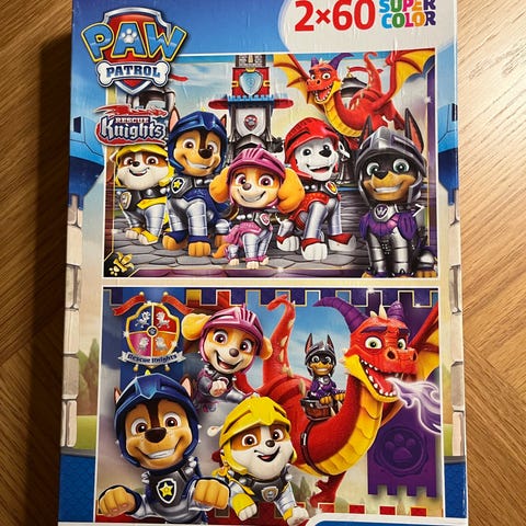 Dette er et puslespil med motiv fra Paw Patrol, bestående af 24 store brikker. Puslespillet er egnet til børn fra 3 år og opefter. Forsiden viser karaktererne fra Paw Patrol. Puslespillet kommer i en farverig æske, der måler 39x27 cm. Bagsiden af æsken viser aldersmål for forskellige puslespil-serier fra Clementoni, og anbefales til børn. Der står 'SuperColor' på æsken, hvilket antyder, at puslespillet har et skarpt og farverigt design.