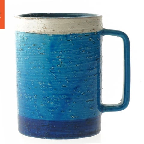 Et sæt med fire keramiske krus, to gule og to blå, som hver har en højde på 11 cm. Krusene har en klassisk form med en rund hank, der gør dem nemme at holde. Indvendigt har krusene en mørkere nuance af blå og rød farve, der giver en fin kontrast til deres ydre farve.
