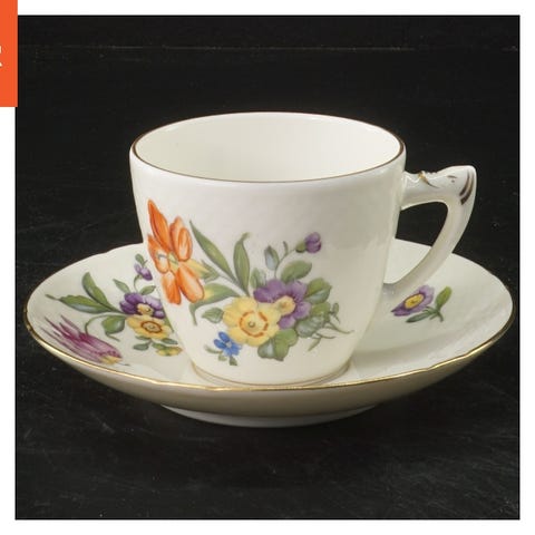 Et sæt bestående af seks kaffekopper med matchende underkopper. Kopperne er dekoreret med blomstermotiver og har guldkanter. De har en størrelse på Ø 7,5 cm og en højde på 13,5 cm. Underkopperne har også matchende blomstermotiver og guldkanter. Porcelænet har en elegant finish, som tilfører et klassisk præg til ethvert kaffebord.