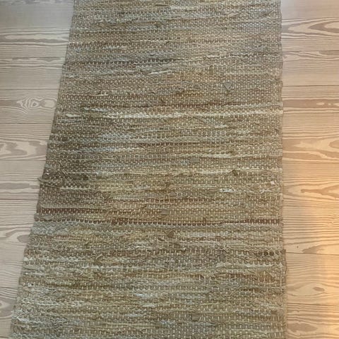 Rug solid læder tæppe - fra dyre- & røgfrit hjem - trænger til rengøring, men fejler intet - kan afhentes i Aalborg eller sendes på købers regning med DAO/BRING.