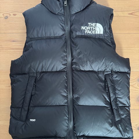 The North Face dunvest i blå nylon til unisex barn i størrelse 164/cs. Vesten har gennemgående lynlås foran og to lynlåslommer i siderne. Overdelen er i kontrastfarve med The North Face-logo på brystet. Velegnet som yderlag eller som ekstra lag under en jakke i køligere vejr.