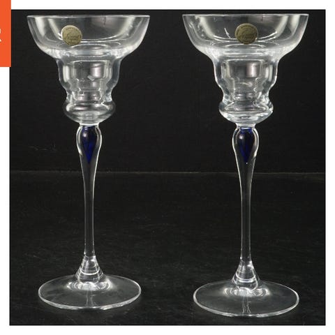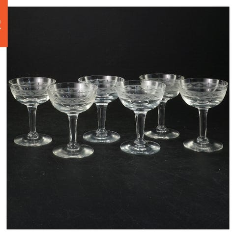 Dette er et sæt af to klare cocktailglas, der står på lange, elegante stilke. Hvert glas har en højde på 19 cm. Designet er enkelt og stilfuldt, ideelt til servering af cocktails eller som dekorative elementer til en festlig middag.