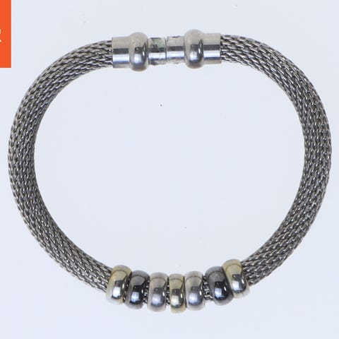Armbåndet er lavet af perler og metal. Det indeholder en større dekorativ perle i midten og et vedhæng i form af en hamsa-hånd. Perlerne er i forskellige nuancer af guld samt klare krystalperler, og metal har fine indgraveringer og mønstre. Diameteren af armbåndet er 7 cm.