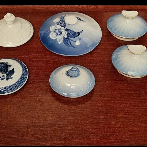 Porcelæns låg med en diameter på 7,5 cm.