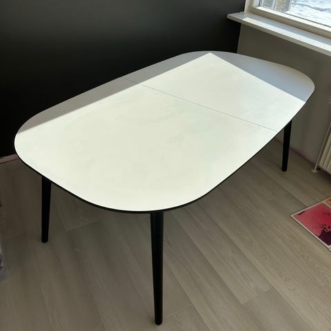 Meget velholdt spisebord 180x120 med 2 tillægsplader 50x120. Købt for ca. 5000,- Kvittering haves. Bemærk Stole IKKE medfølger. Prisen er for bordet + tillægspladerne.