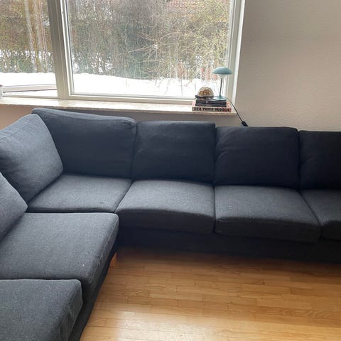 Sælger en flot og komfortabel grå hjørnesofa med chaiselong til kun 900 kr.