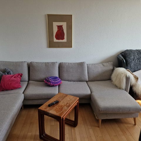 Sofaen er i god stand og har en fast og behagelig siddekomfort. Den passer perfekt i både lejlighed og åben stue. Neutral grå farve, som matcher de fleste indretninger.