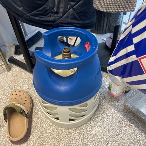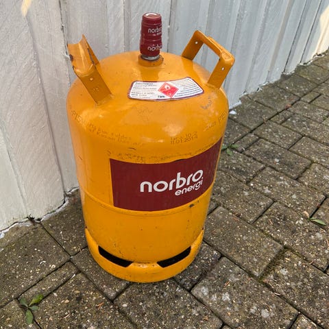 Norbro Energi gasflaske i komposit på 10 kg i blå og hvid. Flasken er fremstillet i let kompositmateriale. Egnet til brug med gasapparater som grill, terrassevarmer, campingudstyr og lignende, hvor der anvendes standard gasflasker i denne størrelse.
