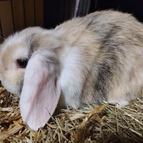 to tæver og en han, racen er mini lop, de er 3/4 måneder gamle