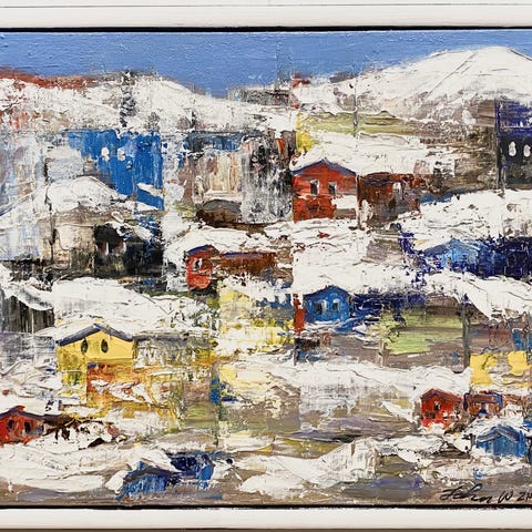 Oliekridt-tegning med motiv fra Grønland