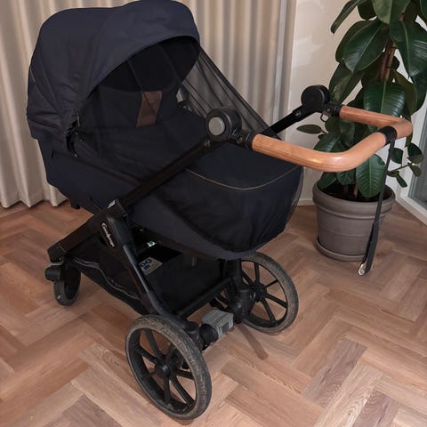 Barne vogn sælges uden fejl og punkterring s fri hjul og læder rundt om uden fejl og tydelige tegn på slid er intet af den står i god stand og står flot