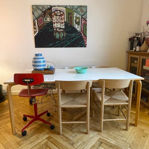 Alvar Aalto spisebordssæt glasbord og fletstole