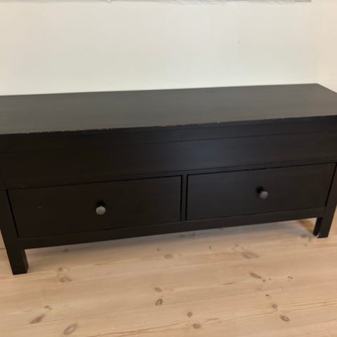 Pæn sort kommode, den ene skuffe skal man selv sætte ny bundplade i.