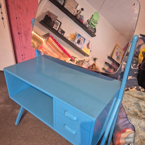 Dejlig og dekorativt sminkebord i teak. Har desværre ikke plads til det mere.