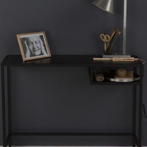 Hjemmelavet sildebens skrivebord lavet af klodsmajor brikker i træ. Sælger da jeg skal flytte til nyt sted hvor der ikke er plads til et kontor. Rundt mærke i venstre hjørne. Se billede. Kabelhylde under bordet. Se billede.