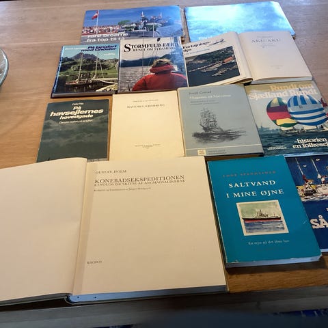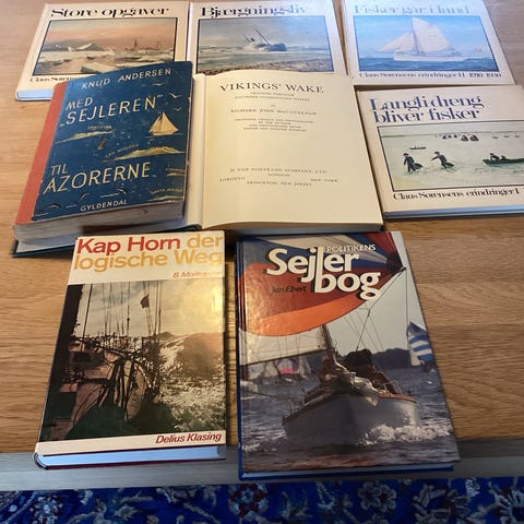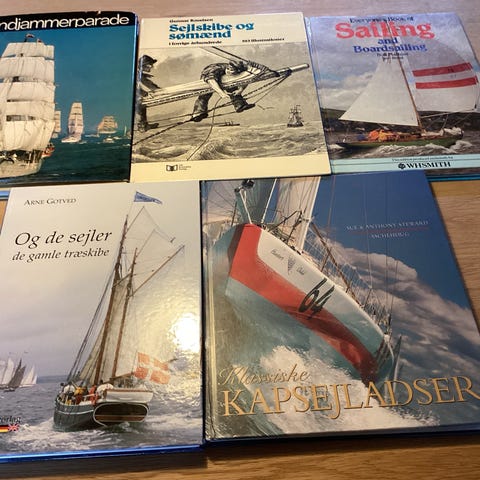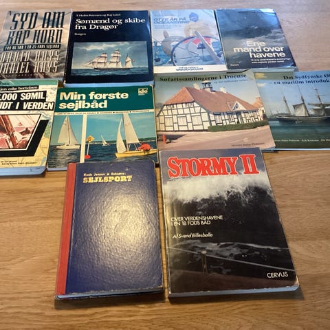 Samling af bøger om sejlads og søfart. Bøgerne omfatter emner som lystsejlads, havsejlads, skibe og maritime fortællinger. Forskellige titler og udgaver, hovedsageligt i hardcover og paperback. Velegnet til læsere med interesse for både, sejlads og maritim historie. Sælges samlet som blandet bogpakke.