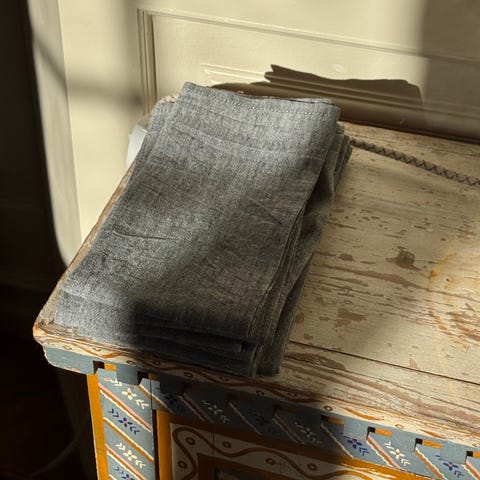 42 smukke kraftige hørservietter i natur. Kun brugt én gang til vores bryllup. Vaskede i neutral og klar til en ny fest.
