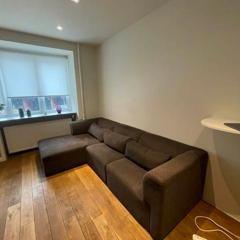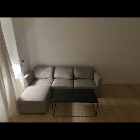 Købt for nogle uger siden, men passer ikke ind i min stue, så sælger den igen. Købte den til 4.500kr. og nu kan du få den til 3600kr. Fremstår som helt ny. Modulsofa OKSBY 3-pers. chaiselong m/opbev. sandfarvet stof