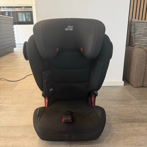 Britax Römer Kid II autostol til børn på ca. 15-36 kg. Autostolen er sort med røde detaljer og har høj ryg med sidebeskyttelse og justerbar hovedstøtte. Sædet er polstret for øget komfort. Monteres med bilens 3-punktssele og barnet fastspændes ligeledes med bilens sele. Velegnet som selepude med ryglæn til større børn inden overgang til almindeligt bilsæde.