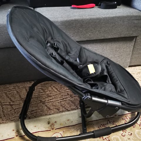 Ergonomisk Evolve 3-in-1 skråstol fra Ergobaby med tre positioner. Den har en naturlig gyngebevægelse og et tidløst design. Perfekt til hyggelige stunder de første måneder af dit barns liv.