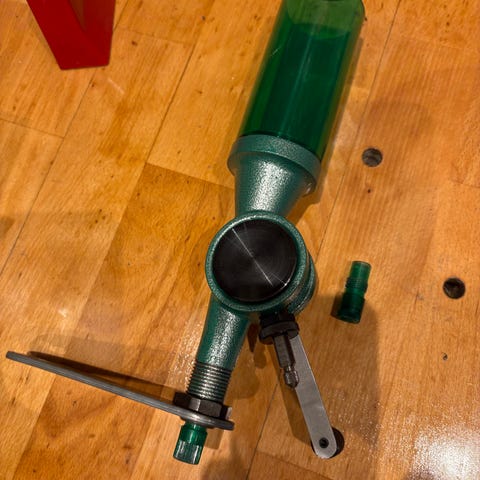 Flot metal krudthorn med motiv af krondyr og ræv.