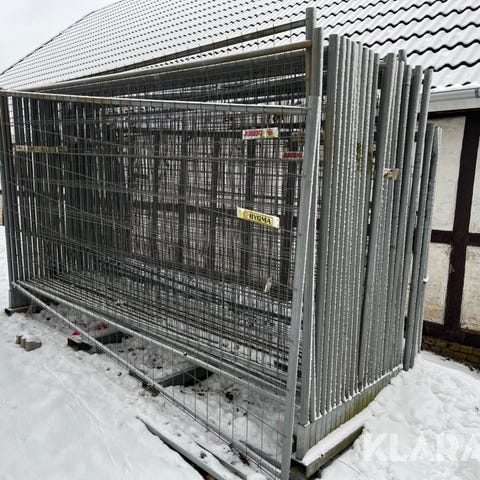 Byggepladshegn i metal, bestående af flere sektioner. Hegnene er udført i galvaniseret metalrør med gitterfelter og er velegnede til midlertidig afspærring, eksempelvis på byggepladser, ved arrangementer eller andre områder hvor der er behov for afgrænsning. Leveres i tilhørende ramme 29 stk samt tilhørende fødder