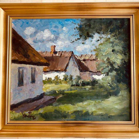 Maleriet er i rigtig god stand, men rammen har brugsspor - se billeder.