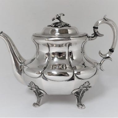 Tyskland. Julius Lemor, Breslau. Stor sølvtekande (800). Højde 21 cm. Længde 23 cm. Med indgraveringer.