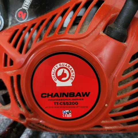 Kædesav i grøn farve med sværd monteret. Velegnet til beskæring og opskæring af træ i have eller mindre skovarbejde. Leveres som håndholdt model med sidehåndtag og kædeskinne. Strømkilde, effekt og øvrige tekniske specifikationer fremgår ikke af oplysningerne.