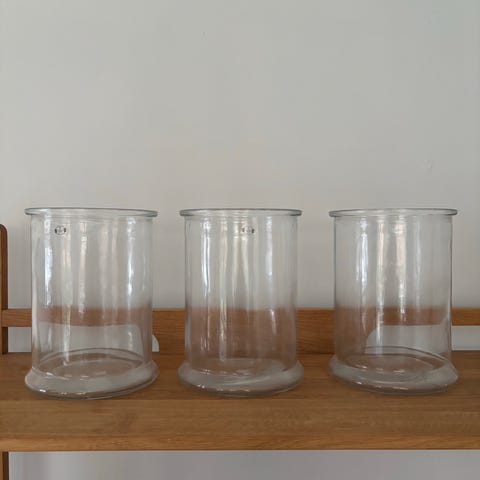 Glasvaser i klart glas. Sættet består af fire ens vaser med enkel, afrundet form. Velegnet til fx blomster, grene eller som kander til vand og andre drikke. Fremstillet i gennemsigtigt glas, så indholdet er synligt. Passer til brug i køkken, stue eller spisestue.