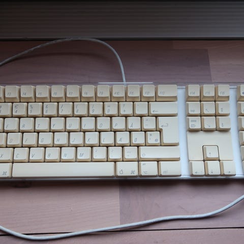 Apple A1048 tastatur med USB-tilslutning. Fuldstørrelses tastatur med numerisk tastatur og danske taster. Hvidt kabinet med integreret USB-kabel. Velegnet til stationære computere eller bærbare, der understøtter USB-tastaturer.