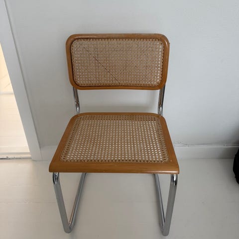 6 stk frisvinger stole i god stand. Fransk flet og krom står velholdt. Enkelte brugsspor, men intet særligt at bemærke. 5 stk originale samt en enkelt off-brand. Sælges samlet for 2500 kr pga. flytning.